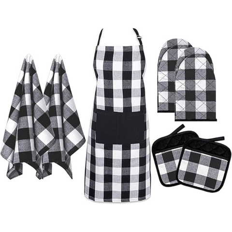 طقم قفازات مريلة مصبوغة من الغزل ، قطن فاخر عالي الجودة ، لملابس المطبخ والحانات والمطاعم والمطبخ